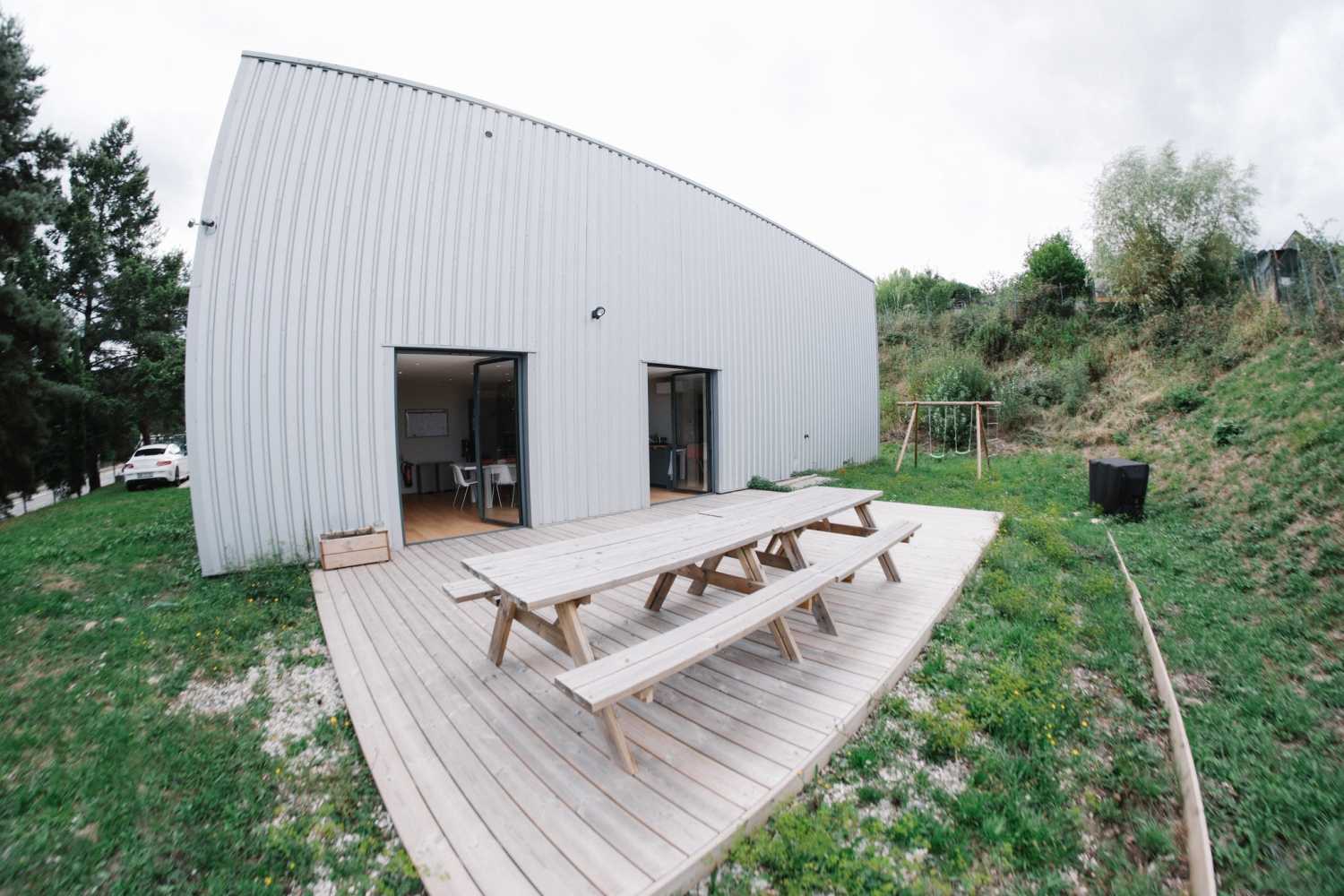 You can enjoy a 40 m² wooden terrace outside the kitchen.