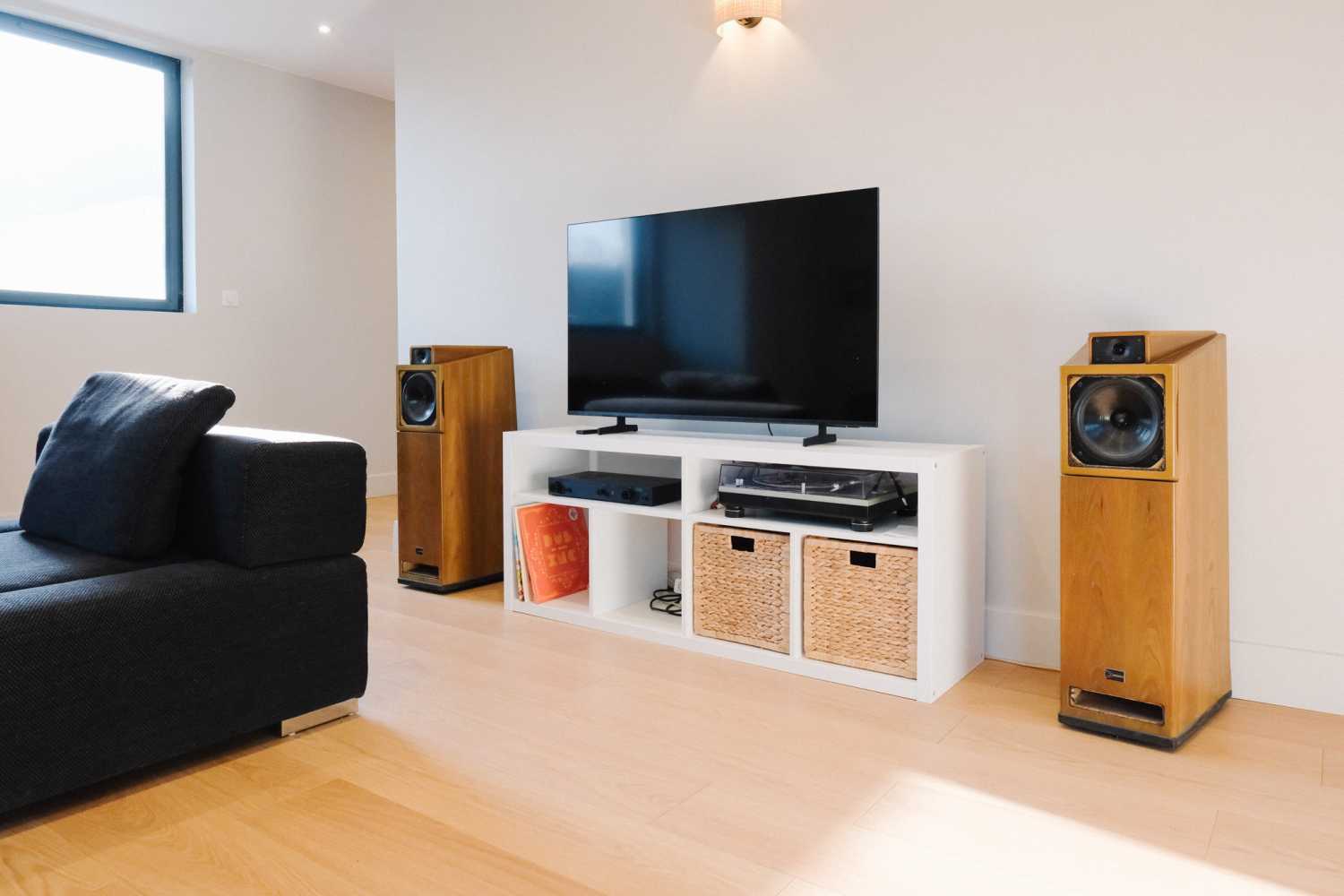 A pleasant and bright lounge equipped with a connected screen.